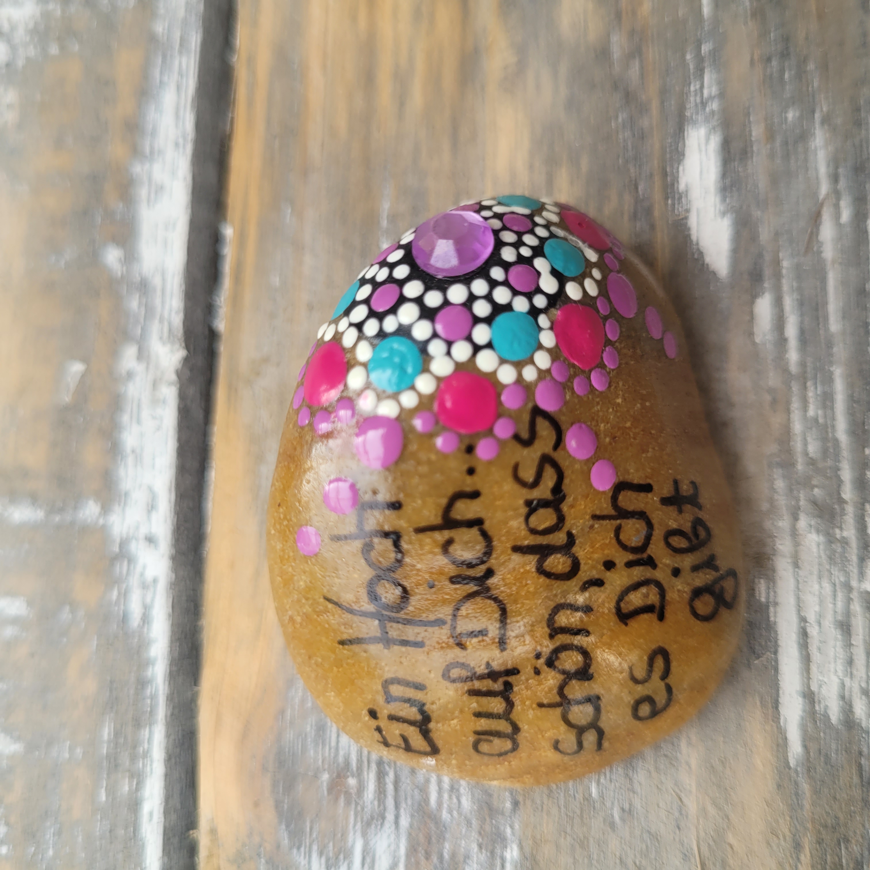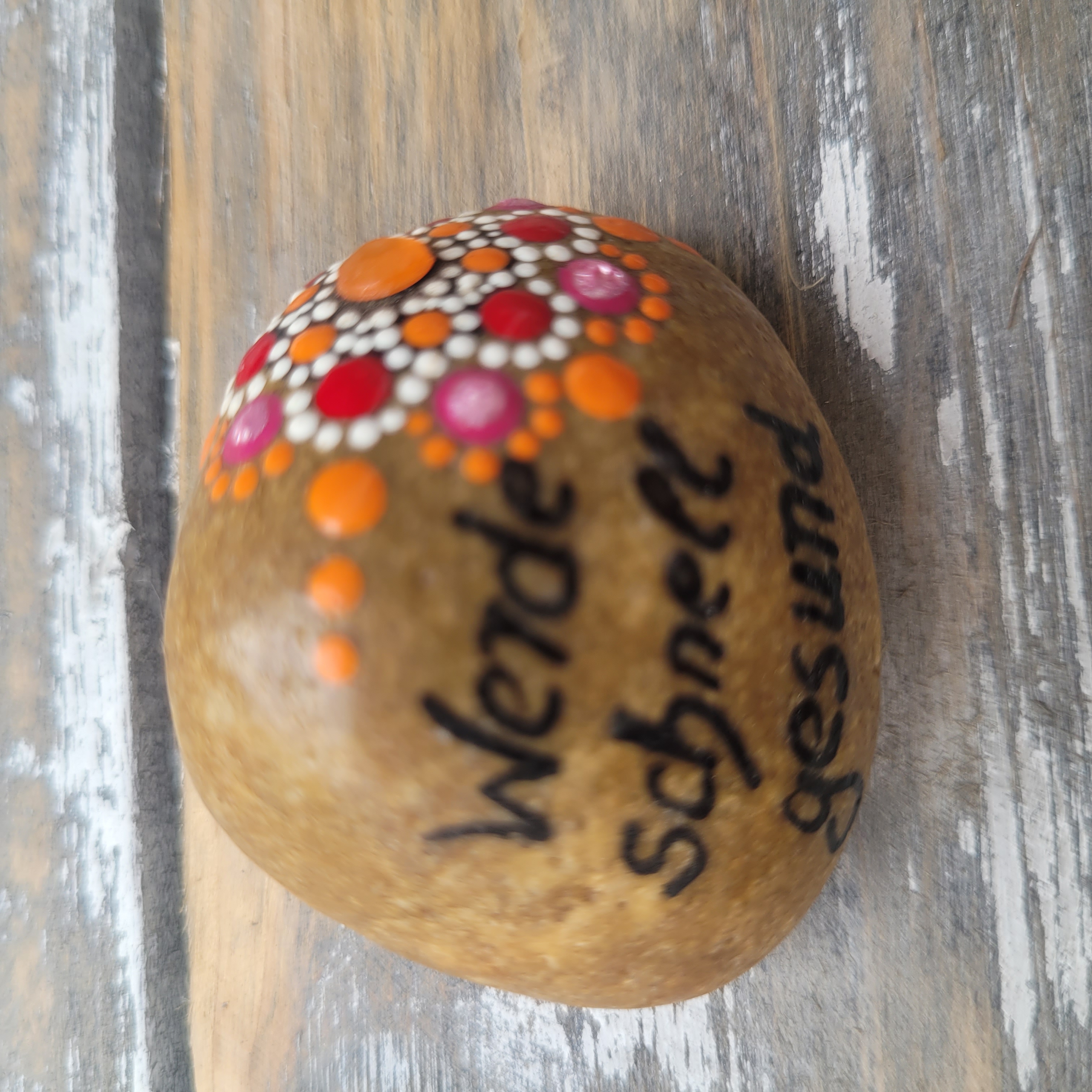 Produkthinweis: | Andauernde Wettereinflüsse können mit der Zeit Spuren auf dem Stein hinterlassen. Daher empfehlen wir einen geschützten Platz.Die Rückseite des Steins ist nicht bemalt oder lackiert, nur signiert.Diese Steine sind Produkte der Natur, deshalb sind Unebenheiten auf der Oberfläche und Strukturen ein Ausdruck ihrer Einzigartigkeit.Jeder Stein ist ein UNIKAT und wird mit Acrylfarben von Hand bemalt und anschließend wetterfest lackiert, ist also auch für den Außenbereich geeignet. |