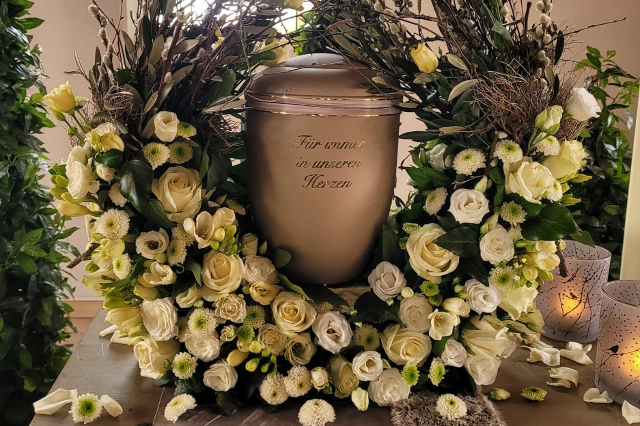 • Urnenschmuck (Kranz, Herz, Halbring oder individuell)