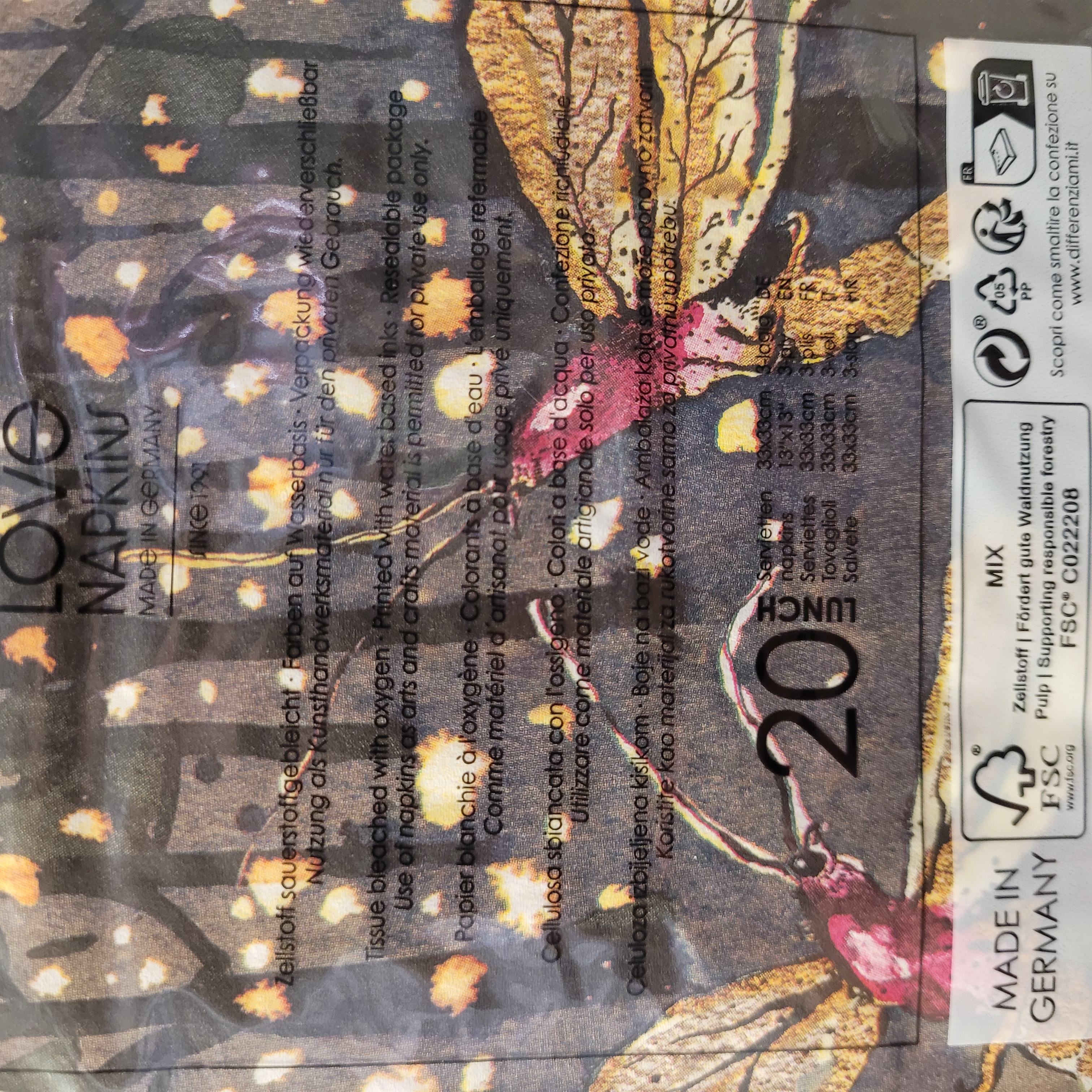 Produktbeschreibung: | 20 Servietten * 25x25 cm * 3-lagigZellstoff sauerstoffgebleicht * Farben auf Wasserbasis * Hergestellt in Deutschland |